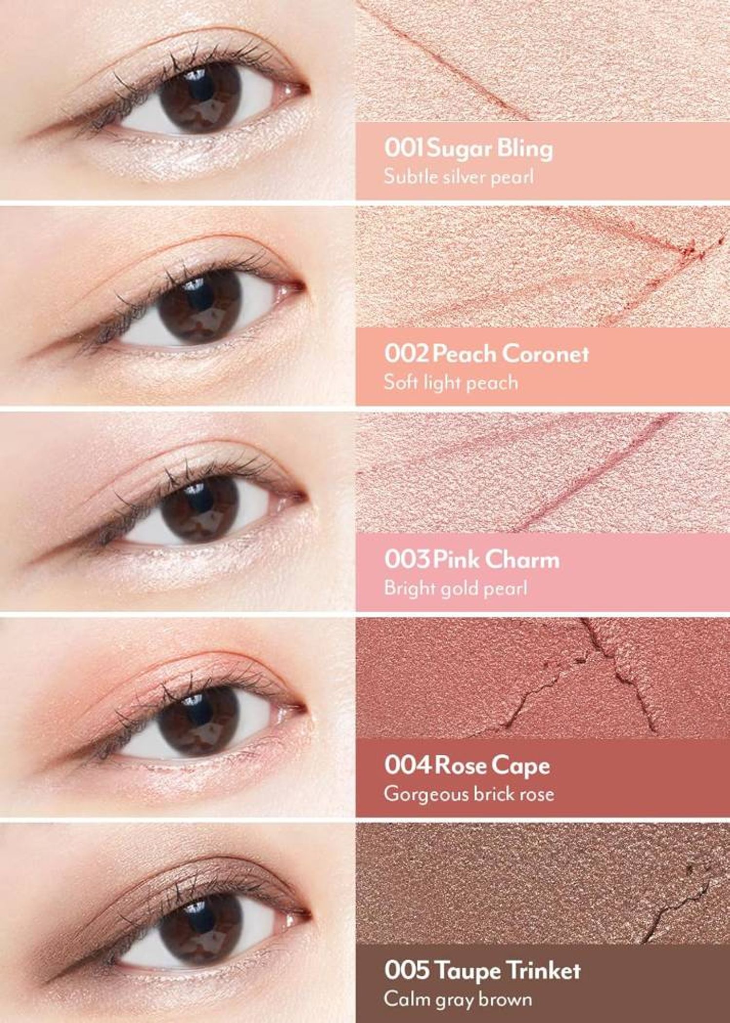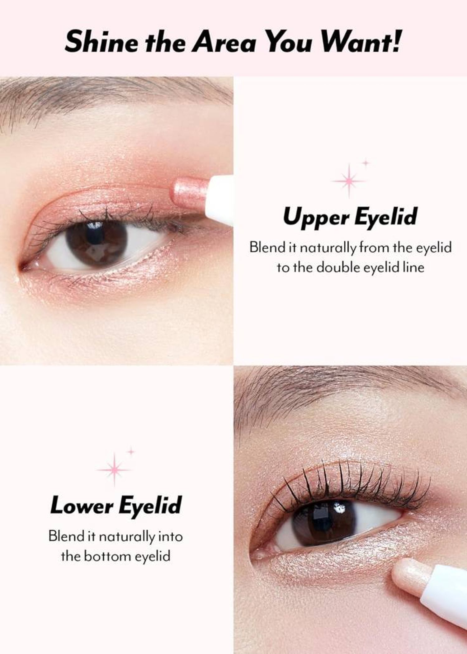 5.5 мм үзүүртэй, удаан тогтоцтой, өтгөн найрлагатай нүдний гялалзуулагч тенийг зовхи болон нүдний доод хэсэгт түрхэж хэрэглэх боломжтой. Тослог бүтэцтэй тул түрхэхэд нүд хатгаж өвтгөхгүй. Түрхэхэд хялбар бөгөөд нүдэн дээр бөөгнөрөхгүй.