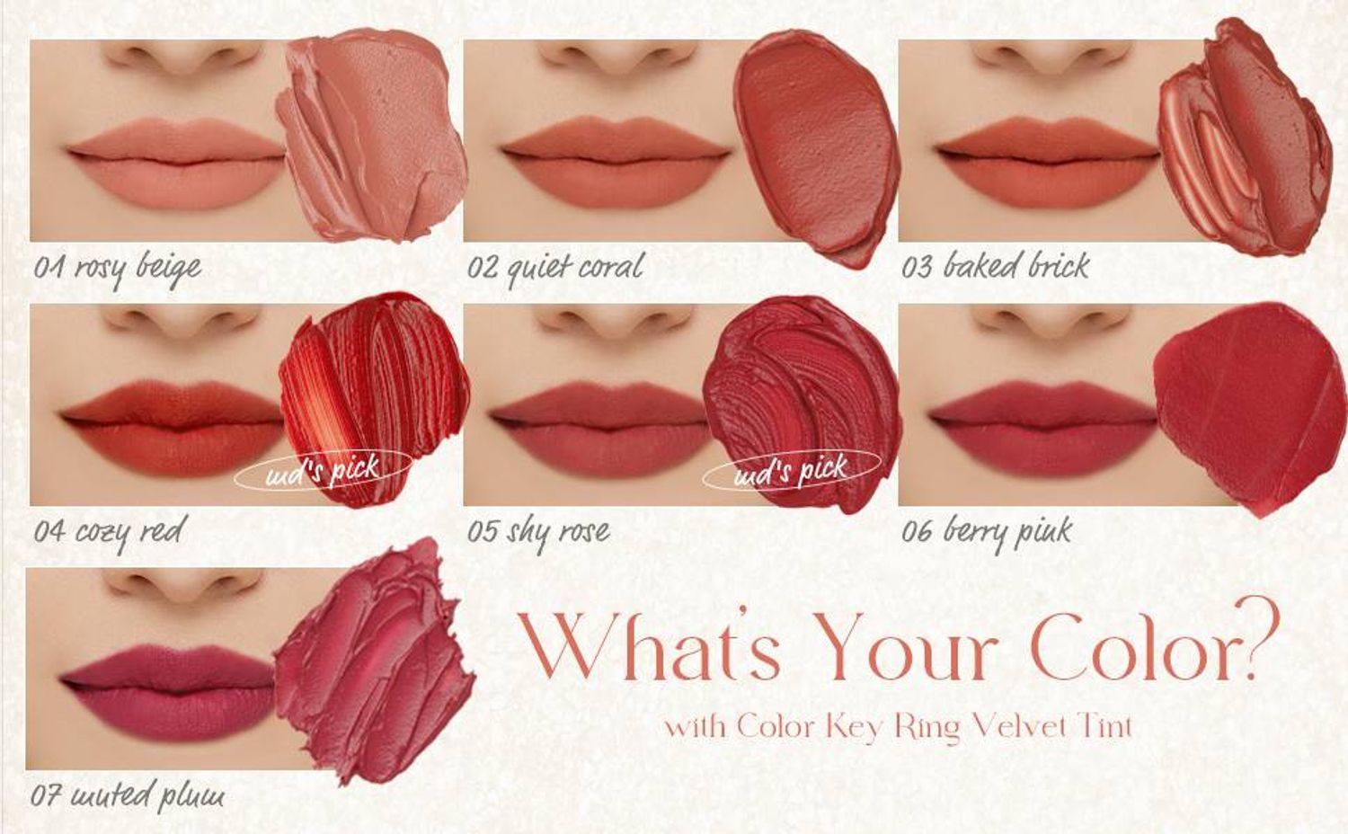 I'M MEME Color Key Ring Velvet Tint бол өхөөрдөм, авсаархан “түлхүүрийн оосор” хэлбэртэй савлагаатай, хөнгөн бархат бүтэцтэй уруулын tint юм.