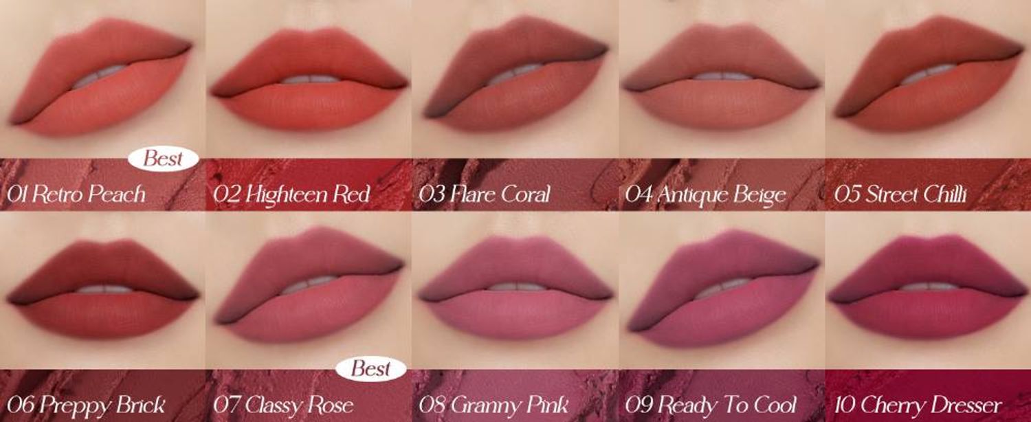 Lip Silhouette Matte Velvet Tint нь хөвсгөр, бархат мэт бүтэцтэй бөгөөд өндөр пигменттэй, уруулд хөнгөн сууж, удаан тогтоцтой өнгийг шингээдэг.