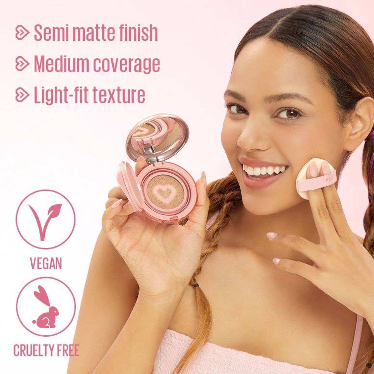 - Энэхүү Веган күшон нь хагас матт төгсгөлтэй, дунд зэргийн өө даралттай, арьсны нүхжилтийг бүрхэж зөөлөн бүдгэрүүлсэн суурь будалт хийхэд тусална.
