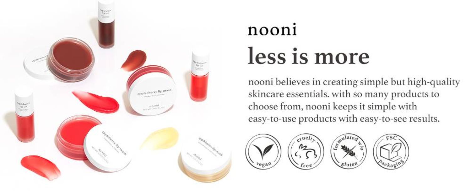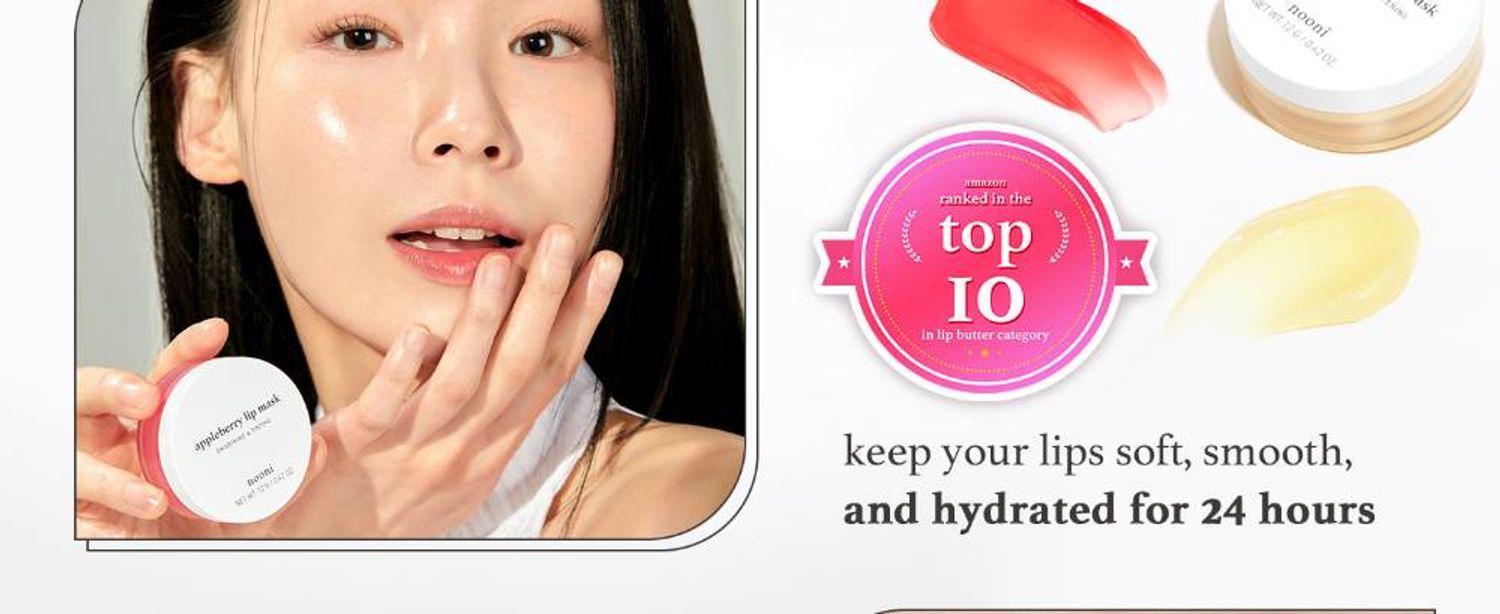 NOONI APPLEWINE өнгөтэй уруулын маск: алимны үрийн тос, ши тос, жимсний ханд агуулсан тус маск нь уруул дээр жигд түрхэгдэж, хуурай ан цавыг толигор болгож, уруулыг гүн чийгшүүлнэ.