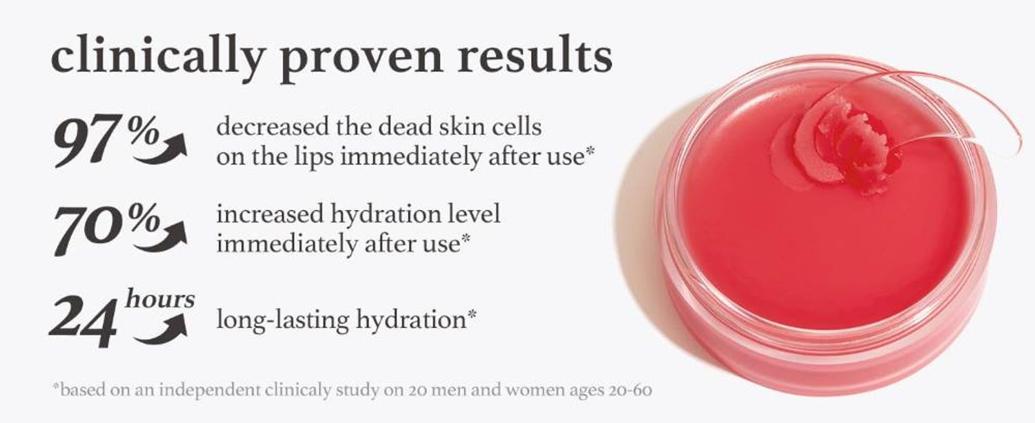 Урт хугацааны чийгшил: уруулыг 24 цагийн турш чийгшүүлж, хүрээлэн буй орчноос хамгаалах бамбайгаар хангадаг гэдэг нь эмнэлзүйн туршилтаар батлагдсан.
