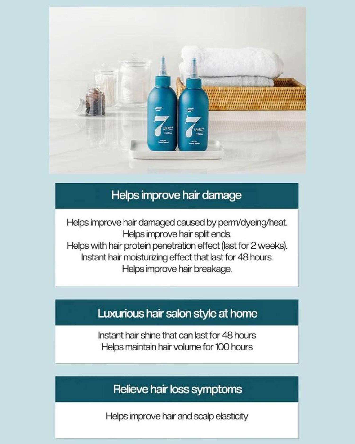 - 7 секундэд үйлчилдэг: Шампуниар угаасны дараа 7 секундийн дотор үс болон хуйхыг тэжээлээр хангаж, эрүүлжүүлнэ.